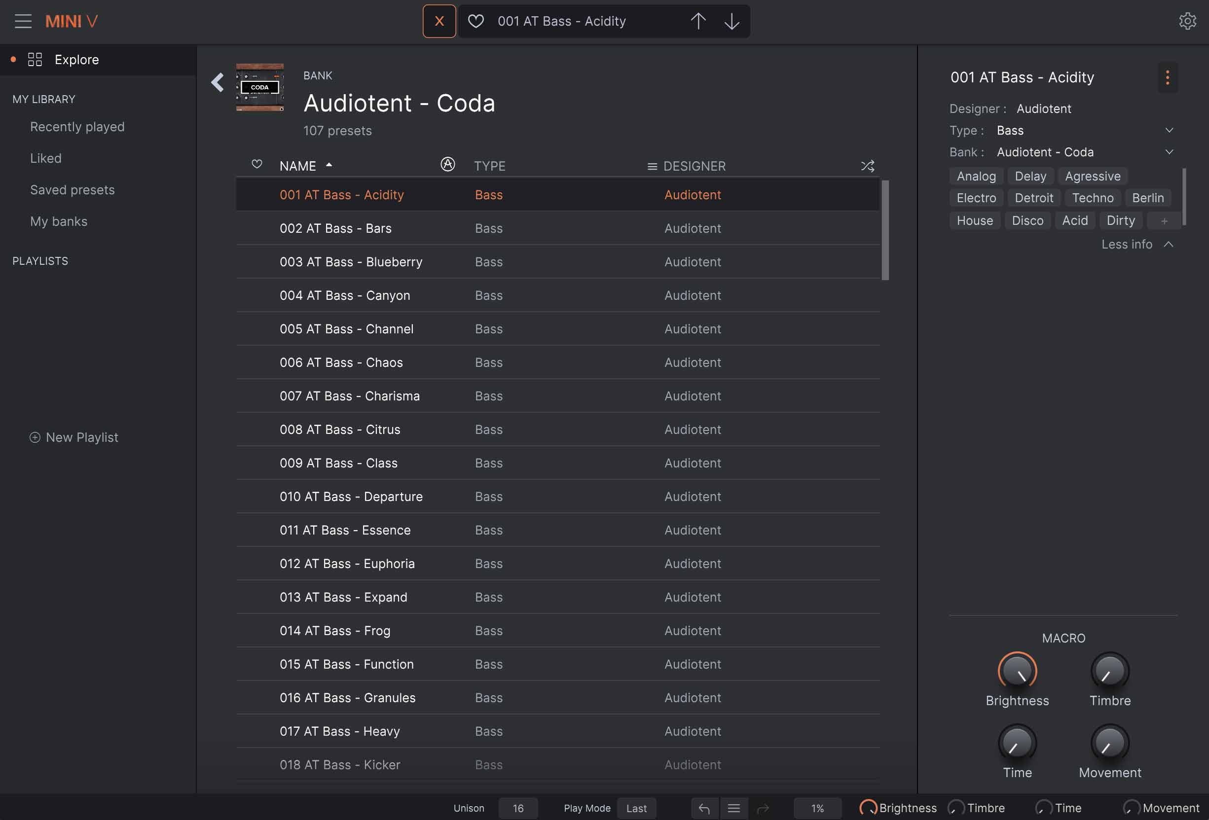 Coda // Mini V3 Presets